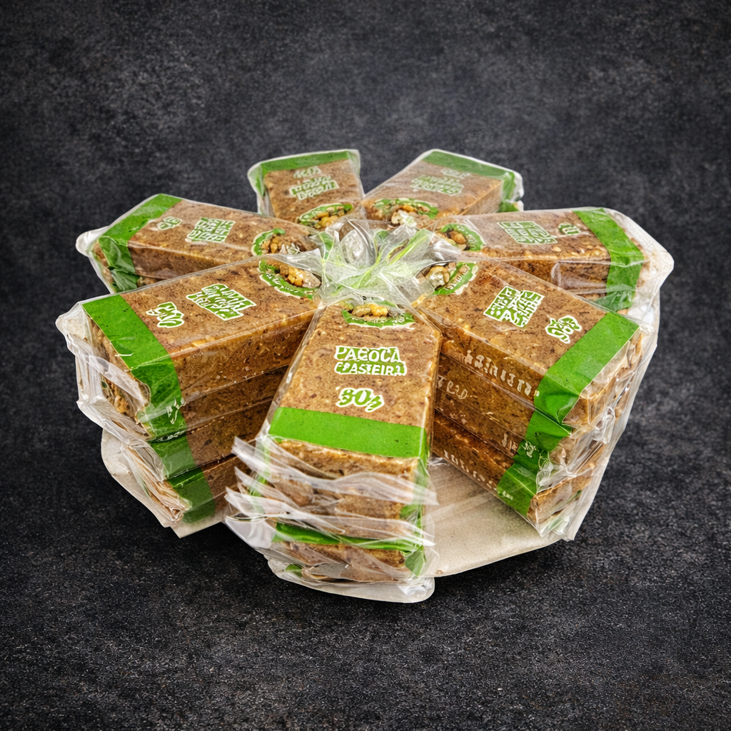 Paçoca caseira com amendoim selecionado e sabor autêntico.